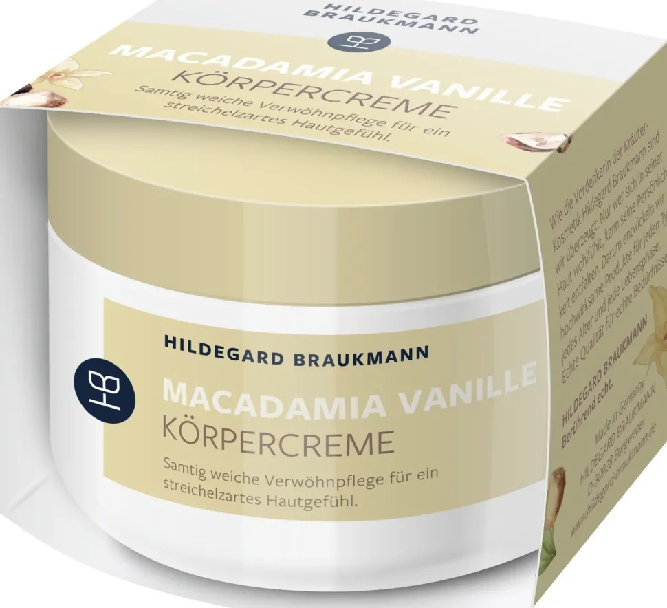 Glücksmomente für anspruchsvolle, trockene Winterhaut. Himmlisch nach Vanille duftend und intensiv pflegend. Reichhaltige Körpercreme mit Macadamianussöl, Mandelöl, Pistazien- und Kakaobutter. Hyaluronsäure spendet Feuchtigkeit.