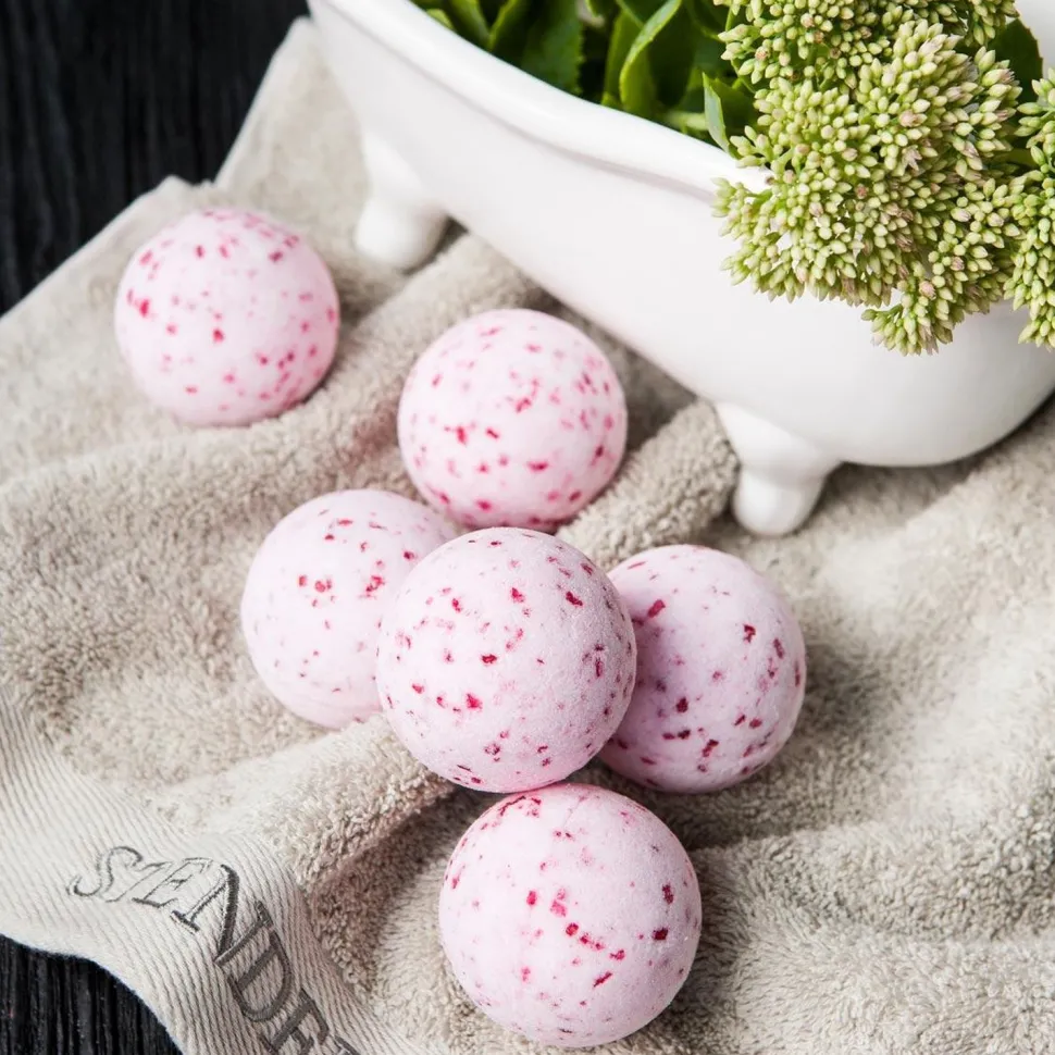 Spüre die Lebensfreude, die die handgemachte Badebombe bietet, angereichert mit Cranberry-Extrakt, ätherischem Wacholderöl, Meersalz und Traubenkernöl.