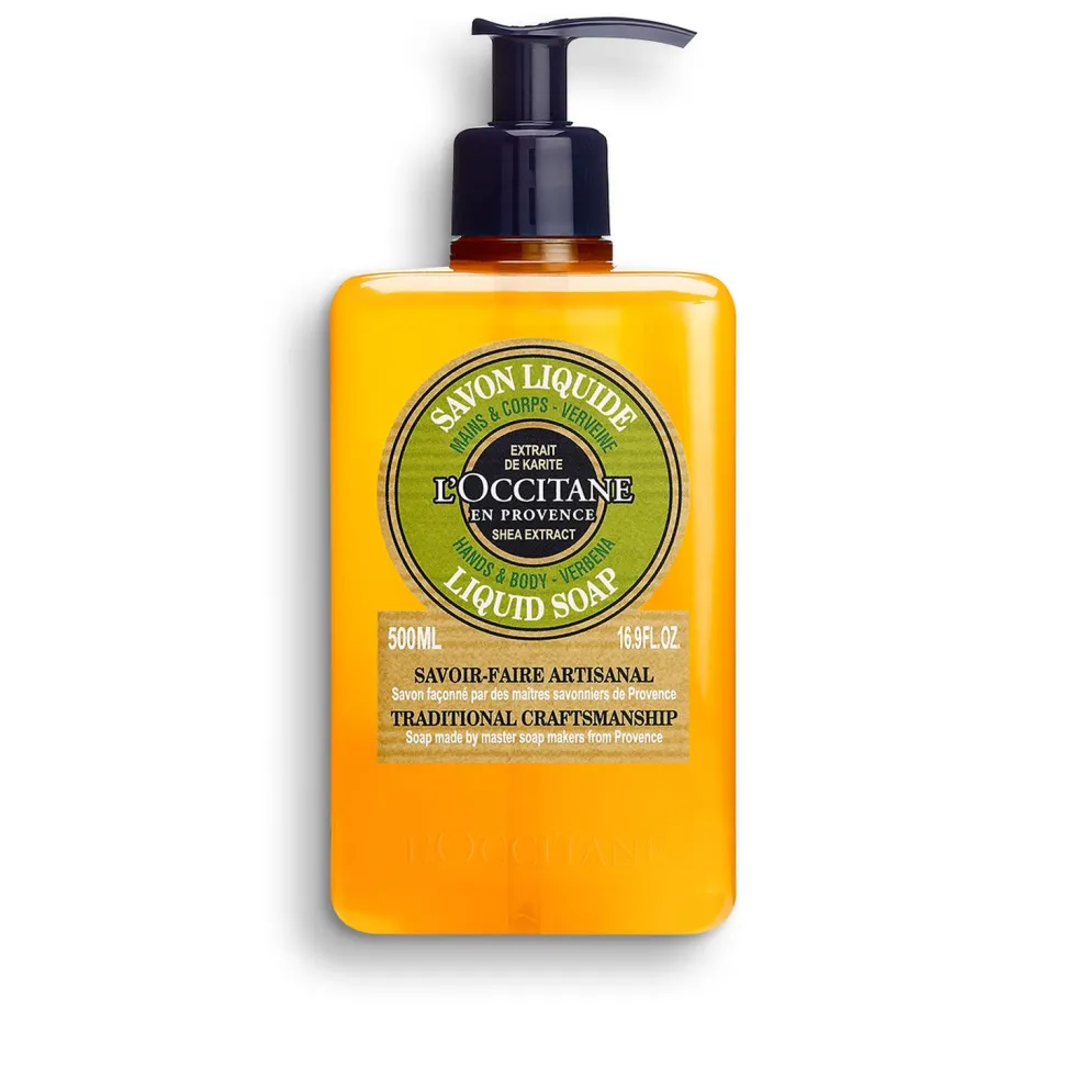 Entdecken Sie diese Karité Flüssigseife mit Verbene-Duft. Die Formulierung mit pflanzlichen Ölen sorgt für eine sanfte Reinigung der Haut. Ohne Palmöl.