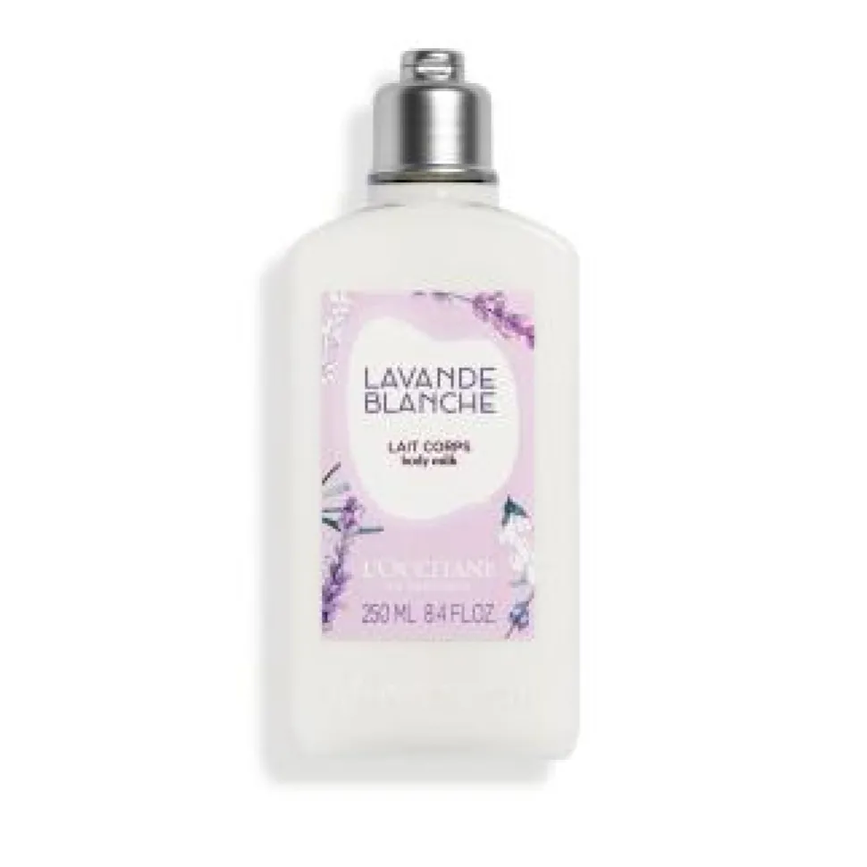 Die White Lavender Körpermilch versorgt die Haut mit Feuchtigkeit und hinterlässt sie geschmeidig und mit dem zarten Duft von weißem Lavendel.